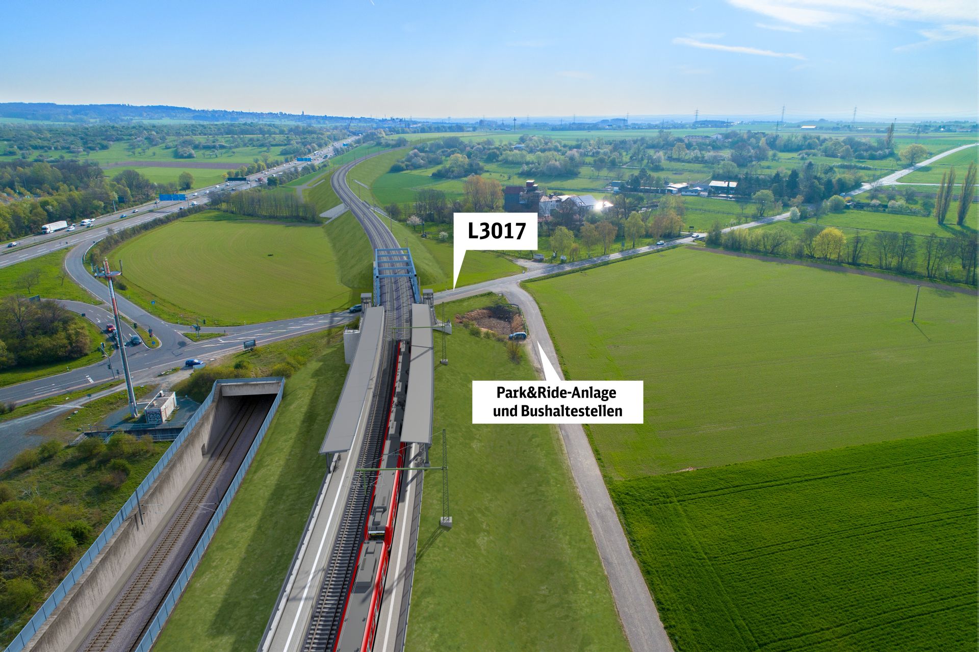Im Bereich der Landesstraße 3017 plant die Bahn einen barrierefreien Haltepunkt mit zwei Außenbahnsteigen. Der Zugang zu den Bahnsteigen erfolgt jeweils über eine Treppe und einen Aufzug von der Landesstraße aus.